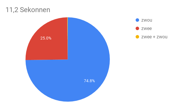 Fir d´Adventskalennerdierche vun haut hu mer eis de Gebrauch vun zwee an zwou an engem ganz bestëmmte Kontext ugekuckt: Als Deel vun engem vun de Sätz an der App sollten eis Participanten 11,2 Sekunden op Lëtzebuergesch iwwersetzen. Dobäi hu mir ënnersicht, ob d´Leit eelef Komma zwee Sekonnen oder eelef Komma zwou Sekonnen an den Opname gesot hunn.